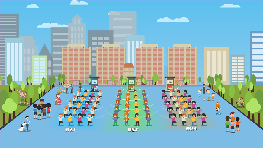 2、智慧廣場舞系統基于廣場舞噪音擾民的社會問題,以定向發聲技術為核心,通過廣場聲場控制,實現廣場舞聲音的指向性發聲,給廣場舞噪音治理提出了科技化治噪之路。