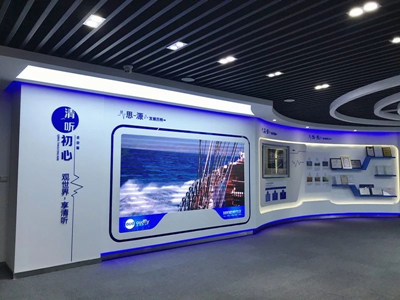 展廳大門(mén)一側(cè),在高分辨率液晶顯示屏構(gòu)成的超大屏幕上,滾動(dòng)播放著企業(yè)宣傳片,參觀(guān)者還未進(jìn)入展廳便可了解到企業(yè)的基本情況,企業(yè)愿景、價(jià)值觀(guān)、發(fā)展情況和智慧團(tuán)隊(duì)。