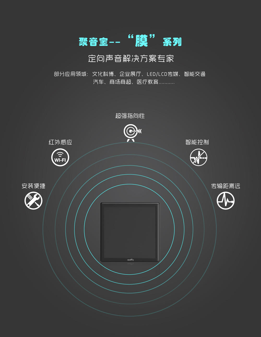 作為國內(nèi)聲學(xué)環(huán)保領(lǐng)域的領(lǐng)導(dǎo)者,清聽聲學(xué)集中資源打造定向音響聚音寶品牌,自去年6月份正式發(fā)布以來,已廣泛應(yīng)用于文化科博、企業(yè)展廳、LED/LCD互動傳媒、汽車、智能交通、商場商超、醫(yī)療教育等20多個行業(yè),帶來了顛覆性的變革。