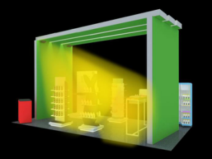 圖中黃色區(qū)域為聚音寶的聲音傳播區(qū)域,基本上整個展位都覆蓋到了,也就是說每個來展位的人,都能自動接收到客戶的產(chǎn)品信息。